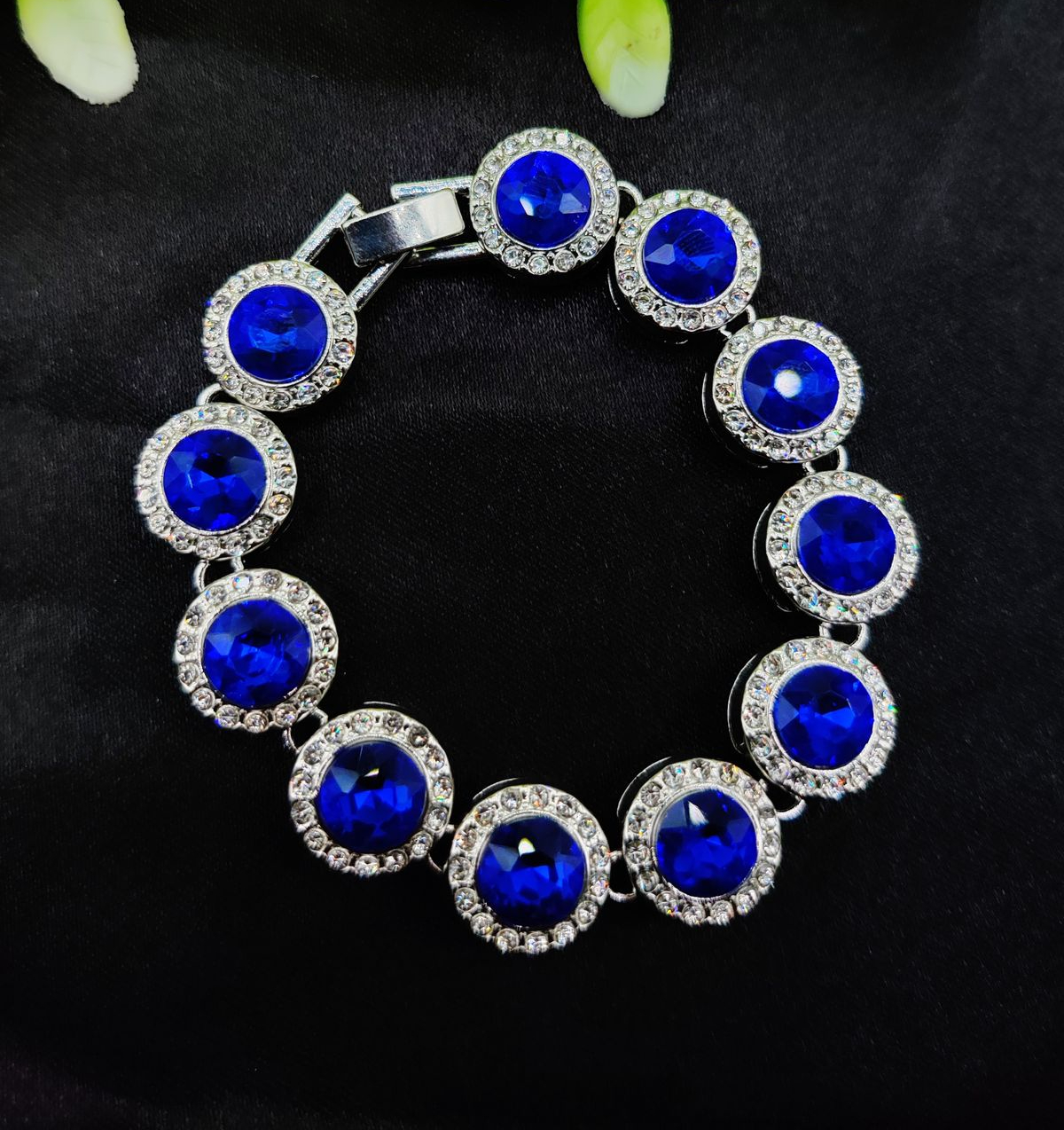Imported Timeless Elegance: Adjustable Imported Crystal Bracelet with Royal Blue Accents
